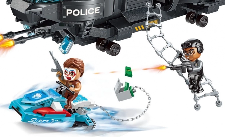 Uđite u svijet akcijskih misija s policijskom jedinicom koja zločincima ne daje priliku. Helikopter s funkcionalnim rotorima i užetvenim ljestvama za spuštanje omogućuje munjeviti desant ravno u središte zbivanja, dok progonjeni bježi na pregradivom vozilu – s motora na vodeni skuter u svega nekoliko trenutaka.
