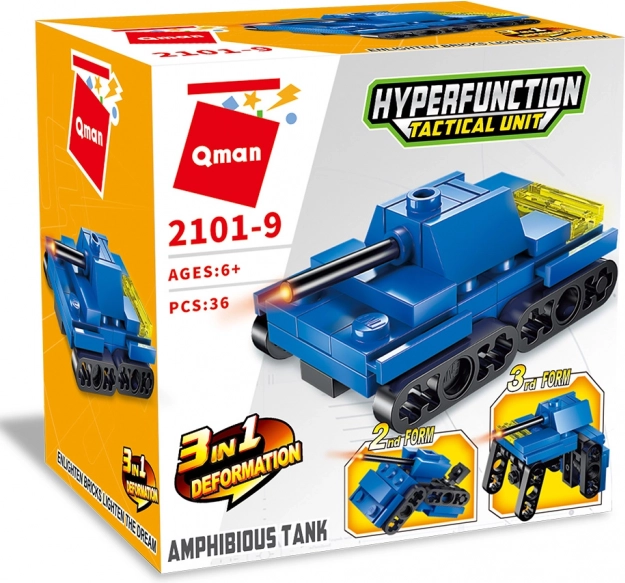 Konstruktor Tank Qman 3u1 nudi tri mogućnosti sastavljanja šarenih plastičnih kocaka, koje se mogu kombinirati s drugim sličnim konstruktorima. Izrađeno od kvalitetne i izdržljive ABS plastike.