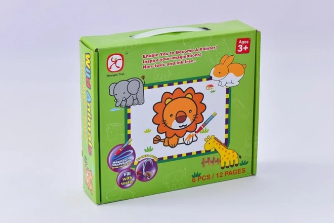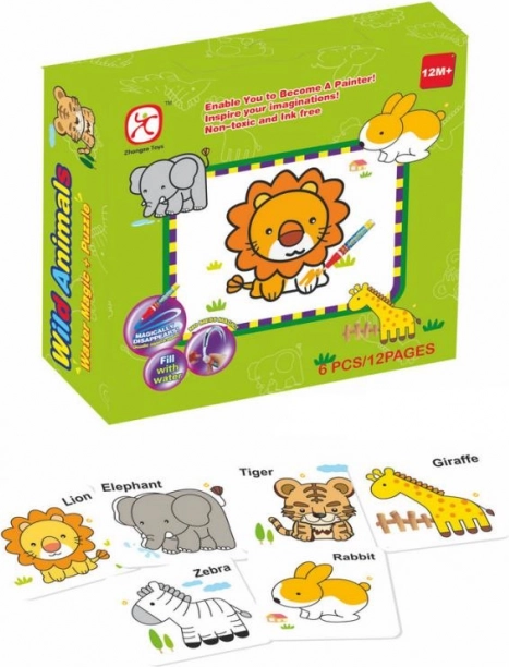 Umetni slagalica Životinje i vodeno bojanje idealna je kombinacija za razvoj mašte i fine motorike. Djeca mogu uživati u šest različitih slika – zec, slon, žirafa, lav, zebra i tigar.