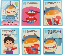 Šarene kartice s koracima četkanja zubi motiviraju djecu na redovitu i pravilnu brigu o osmijehu.