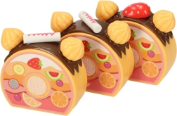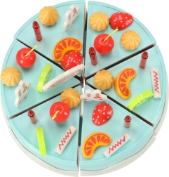 Šest dijelova torte spojeno je čičkom – djeca ih lako narežu plastičnim nožem i ponovno slože. Idealno za vježbanje fine motorike i realističnu igru.
