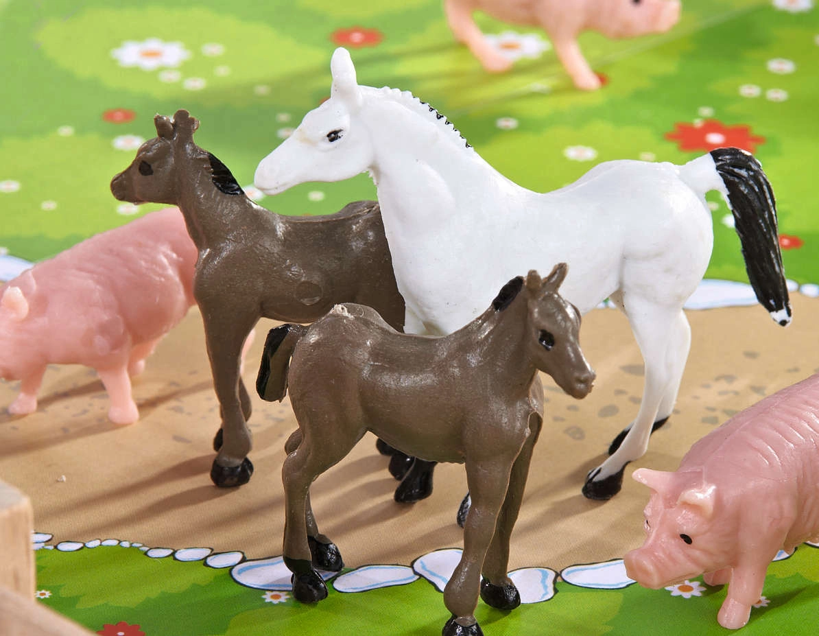 Konje, krave, praščići, guske i skrbnica potiču maštu, uče djecu prepoznavati vrste životinja i razvijaju socijalne vještine kroz igru uloga.