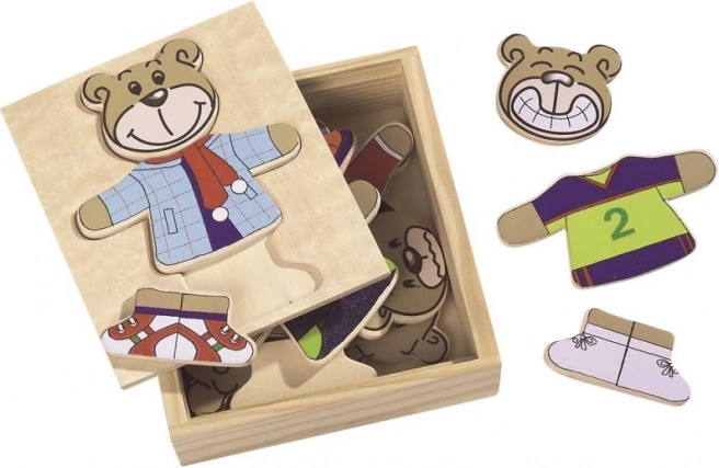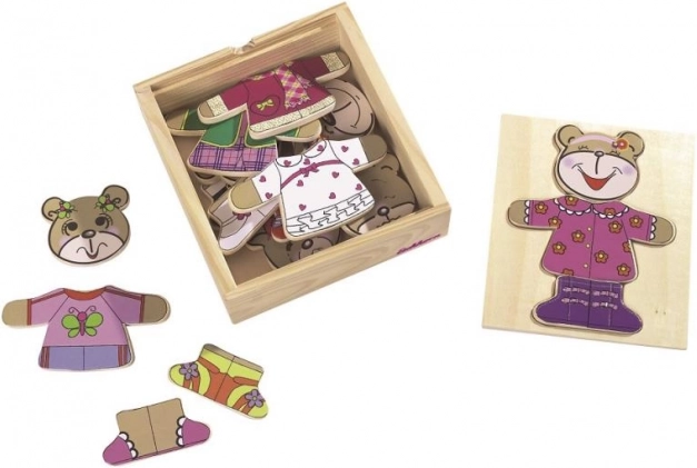 Obuci svog medvjedića s ovom zabavnom slagalicom! Sadrži 20 dijelova i dolazi u praktičnoj drvenoj kutiji.