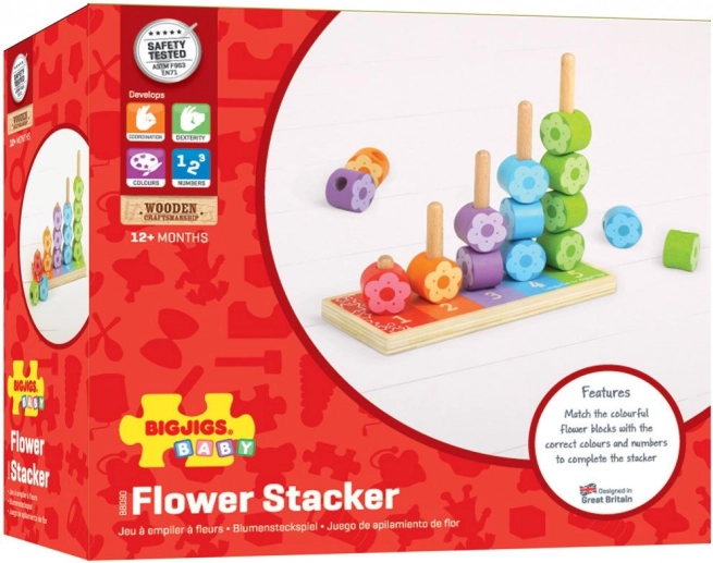 Svaki stupić ima svoj broj i boju, pa djeca lako shvaćaju princip sparivanja i količine. Cvjetni dijelovi ugodno leže i u malim ručicama te potiču na samostalnu igru i zajedničko istraživanje s roditeljima.