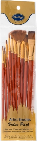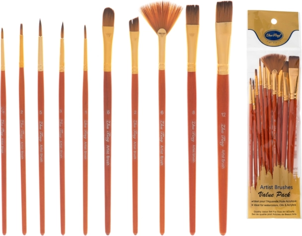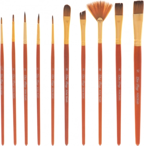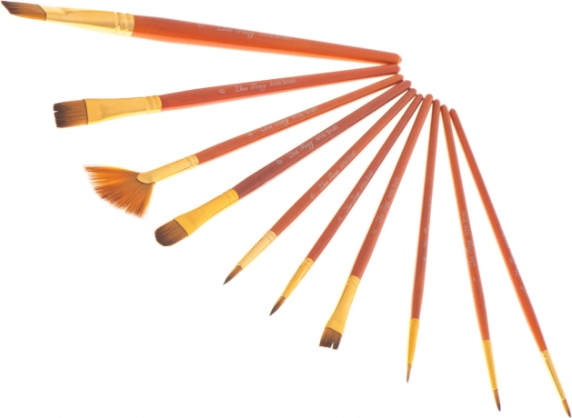 Set sadrži 10 umjetničkih kistova, koji su prikladni za korištenje s raznim vrstama boja. Zahvaljujući vrhovima različitih debljina lako je stvarati složenije oblike, a tanki kistovi omogućuju dotjerivanje vašeg djela u svakom detalju. Svaki kist označen je brojem, što olakšava izbor odgovarajuće veličine.