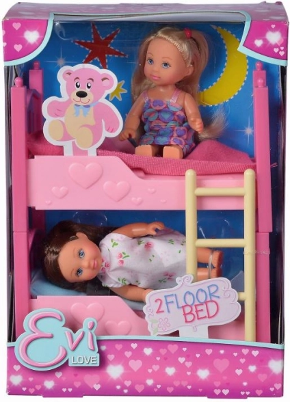 Stvorite ugodnu sobicu za svoje lutkice s očaravajućim setom Evi Love. Dvije male lutkice mogu spavati u krevetu na kat s praktičnim ljestvama, pa je večernje stavljanje u krevet jednako zabavno kao i igra tijekom dana.