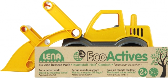 Ovaj izdržljivi ECO utovarivač LENA izrađen je od reciklirane plastike s dodatkom drva, zbog čega je prijazniji prema prirodi i ujedno vrlo čvrst. Dijete će uživati u realističnojoj igri zahvaljujući funkcionalnom podizanju i istresanju kante te udobnom pristupu interijeru kroz preklopnu kabinu.