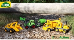 Traktor LENA ECO donosi zabavu i odgovornost prema prirodi. Zahvaljujući robusnoj izradi od recikliranih materijala i primjesi drva, izdržljiv je i siguran za male vozače. Prednji utovarivač je u potpunosti funkcionalan i omogućuje nabiranje i presipanje materijala, što potiče finu motoriku i kreativnu igru.