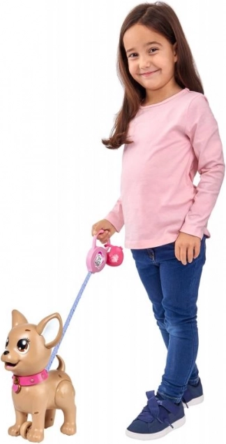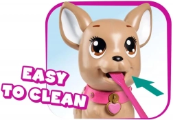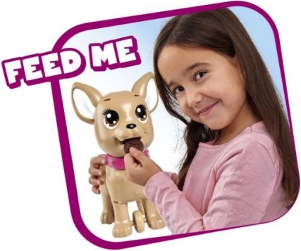 Interaktivni psić čivava Poo Poo od CHI CHI LOVE donosi djeci realističnu, a istovremeno sigurnu igru brige o ljubimcu. Napravite poslasticu od modeline, nahranite psića i krenite u šetnju – nježnim pritiskom na povodac psić savija stražnje nožice i napravi hrpicu, koju je lako počistiti uz priložene vrećice.