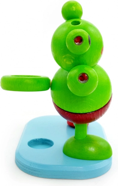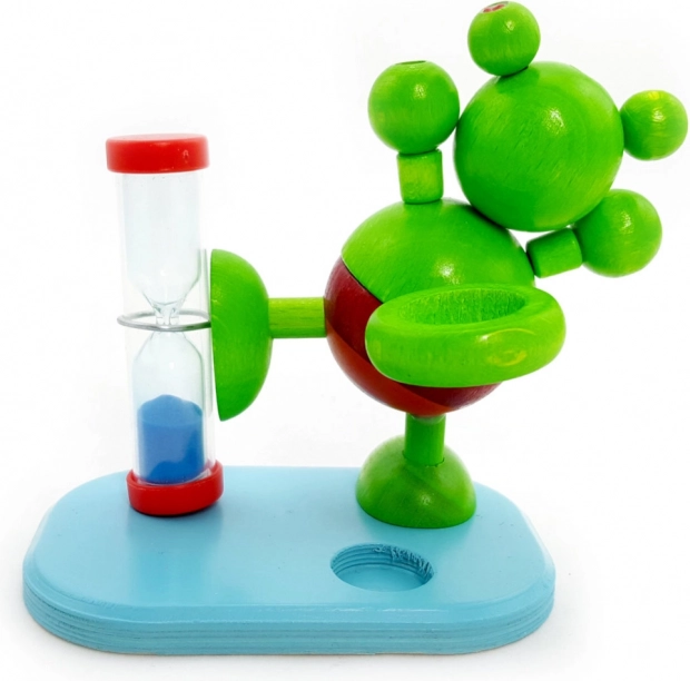 Razigrane drvene pješčane satnice Žaba s držačem četkice. Mjeri 2 minute za pravilno čišćenje zuba. Prirodno drvo, visina 12 cm, kvalitetna izrada.