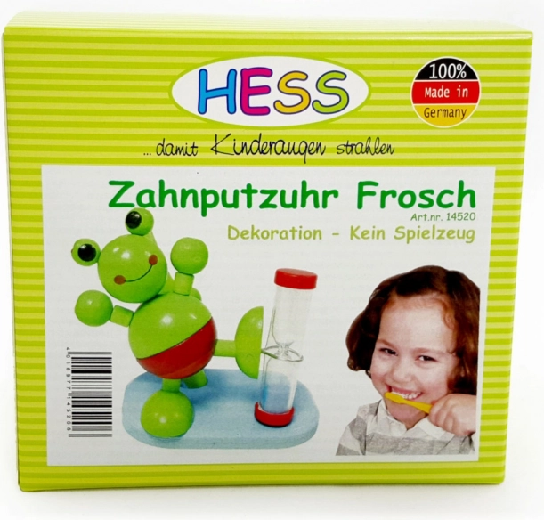 Uljepšajte djeci svakodnevnu higijenu s ovim razigranim drvenim pješčanim satnicama u obliku žabe. Idealno za mjerenje 2 minute četkanja zuba, s praktičnim držačem za četkicu za zube iza figurice. Kvalitetna izrada od prirodnog neobrađenog drva i atraktivan dizajn potiču na redovito četkanje.