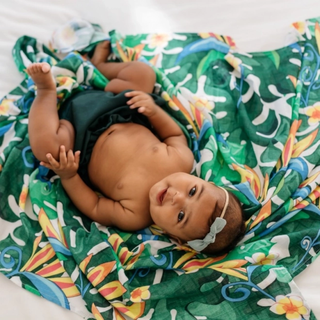 Lagano i prozračno bambusovo-pamučno muslin platno Tommy Lise u uzorku Lush Garden nježno je prema dječjoj koži, prozračno, hladno i ugodno na dodir. Zahvaljujući velikoj dimenziji 120 × 120 cm može se koristiti kao pokrivač, povoj te zaštita pri dojenju.