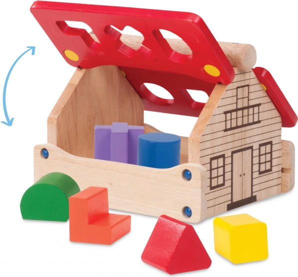 Drvena kućica s umetaljkama je idealna igračka za razvoj djece, koja podupire prepoznavanje boja i oblika te poboljšava finu motoriku.