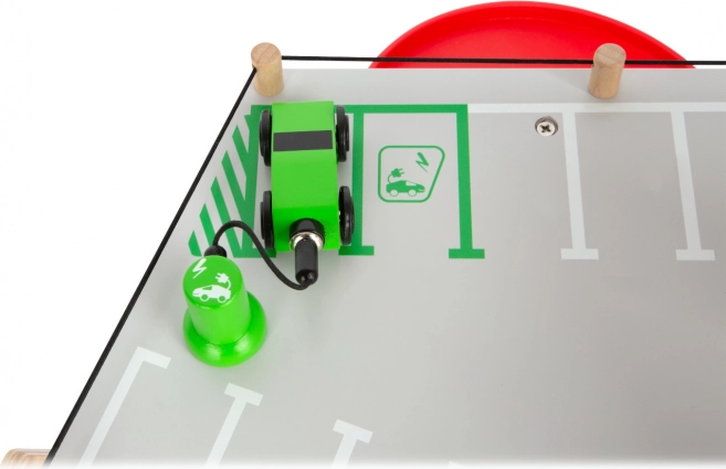 Djeca mogu natočiti gorivo, napuniti elektroauto i podići vozilo na rampi. Realistični dodaci potiču maštu i uče osnovama prometnog ponašanja.