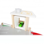 Dio seta su 2 autića, pumpa, punionica, dizač vozila, autopraonica s četkama i tri barijere. Katovi imaju gumenu zaštitnu ogradu protiv ispadanja vozila, a podloge su bogato označene ikonama i prometnom signalizacijom. Konstrukcija je čvrsta, izdržljiva i sigurna te zahtijeva jednostavnu montažu s ilustriranim uputama.