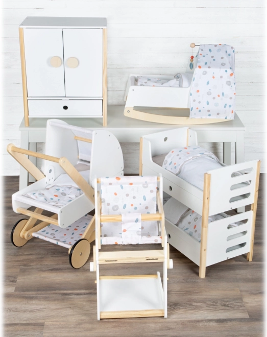 U kompletu je obostrana, neutralno usklađena posteljina i velika deka pod kojom se udobno smještaju lutke ili plišanci do 46 cm. Nježne boje i minimalističke linije čine je ukusnim dodatkom svakom interijeru te potiču kreativnu i imitativnu igru.