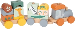 Drveni Safari vlakić je razigrani i edukativni pratitelj za djecu. Sastoji se od 1 lokomotive, 2 vagona i 13 dijelova koji se lako mogu kombinirati prema dječjoj mašti i kreativnosti. Svaki dio je ilustriran životinjskim motivima, što doprinosi razvoju maštovitosti i kreativnosti.