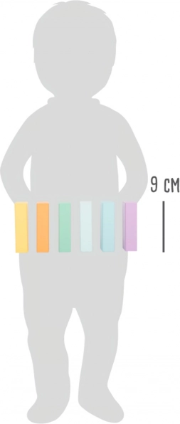 Elegantna paleta boja pristaje dječjoj sobi pa kocke postaju i ukusna dekoracija. Set je dio proizvodne linije Pastel i ističe se visokim udjelom prirodnog drva u kombinaciji s nježnim bojama koje potiču mirnu igru bez preopterećenja osjetila.