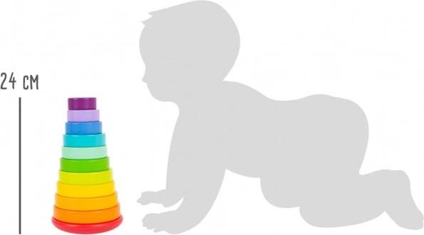 Sa deset šarenih diskova i štapićem na zaobljenoj bazi, ovaj toranj potiče razvoj motoričkih vještina i razlikovanje boja.