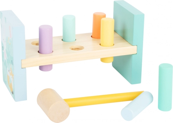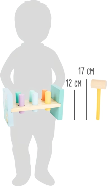 Otkrijte čaroliju tradicionalne igračke u modernom ruhu. Naša igračka za zabijanje u nježnim pastelnim bojama idealna je za djecu koja žele isprobati svoju snagu i usput poboljšati svoju motoriku. Ilustracije životinja daju ovoj igrački jedinstveni izgled. Nakon zabavnog zabijanja svih klinova, igračku jednostavno možete okrenuti i započeti ponovno.