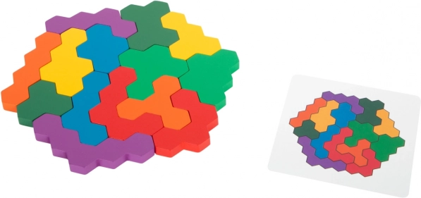 Mozaik igra u obliku heksagona osmišljena je za vježbanje logike i kreativnog razmišljanja djece. Svaki je dio pažljivo izrađen od drveta, što jamči trajnost i dugotrajnu zabavu. Igra koja zabavlja i educira.