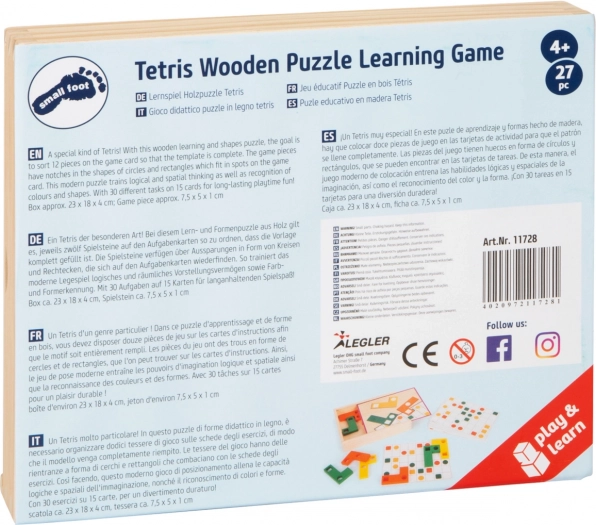 U pakiranju ćete pronaći praktičnu drvenu kutijicu s kliznim poklopcem koja sigurno čuva sve komponente. Igra je odličan poklon i dopuna drugim obrazovnim igrama SMALL FOOT. Podržava samostalnu igru i zajedničko rješavanje zadataka s roditeljima.