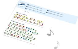 Dio pakiranja su notni zapisi s oznakama u bojama i omiljenim dječjim pjesmicama za brzi početak.