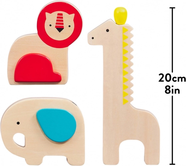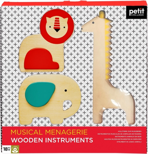 Preslatki set drvenih glazbenih instrumenata za najmlađe potiče ritam, sluh i finu motoriku. Sadrži žirafin guiro i dvije rumba kugle (slon i lav). Izrađeno od FSC drveta, tiskano bojama na bazi vode i isporučeno u reciklabilnom pakiranju; sigurno od 18 mjeseci.