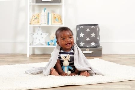 Pletena dekica od čistog pamuka nježna je prema bebinoj koži, prozračna i periva u perilici radi jednostavnog održavanja.