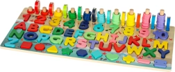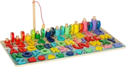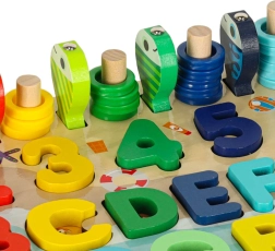 Ovaj kreativni didaktički set nudi djeci mnogo načina da uče kroz igru. Zahvaljujući sortirci vježbaju prepoznavanje oblika, brojeva i slova, uz abakus usvajaju osnove računanja, a s magnetskom udicom uživaju u zabavnom lovu ribica koji jača koordinaciju oko–ruka.