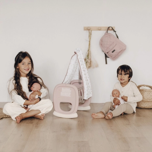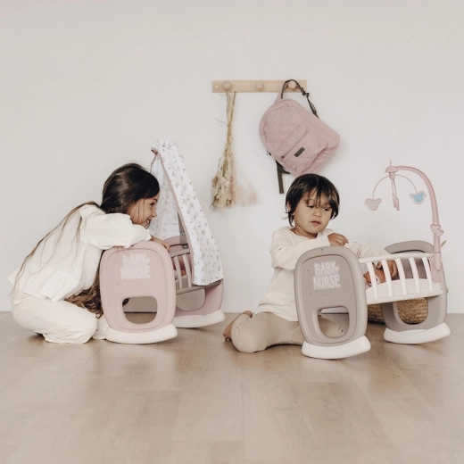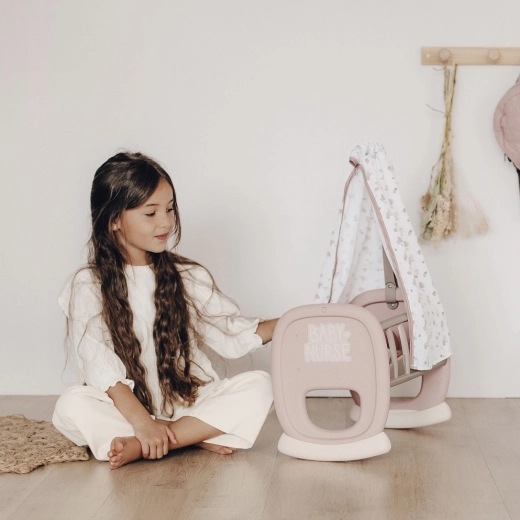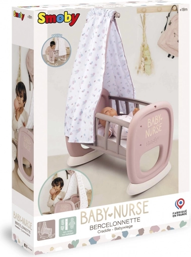Dječja kolijevka Smoby Baby Nurse s tekstilnim baldahinom donosi djeci realistično igranje roditelja. Zahvaljujući zaobljenoj ljuljajućoj bazi male skrbnice mogu nježno uspavljivati svoju lutku, dok mekani baldahin stvara ugodno okruženje.
