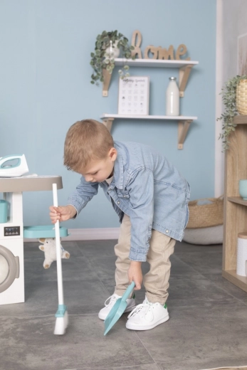 Perilicu s otvarajućim vratima i pretincem za deterdžent nadopunjuju daska za glačanje s mehaničkim glačalom, sušilo i košara za rublje – potpuna njega rublja u dječjoj veličini.
