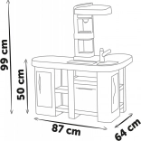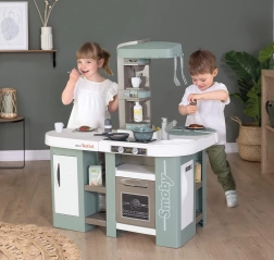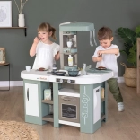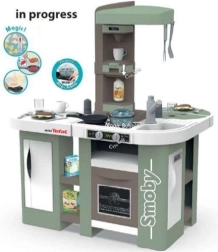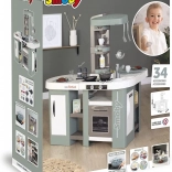 Ova prostrana kuhinjica inspirirana brendom TEFAL nudi sve za autentičnu igru: radnu plohu, sudoper s mješalicom, aparat za kavu na kapsule, aparat za gazirana pića, pećnicu, perilicu posuđa, hladnjak i otvorene police. Elektronička funkcija magičnog lonca nakon dodavanja vode i pritiska na gumb stvara prave mjehuriće koji će oduševiti svakog malog kuhara.