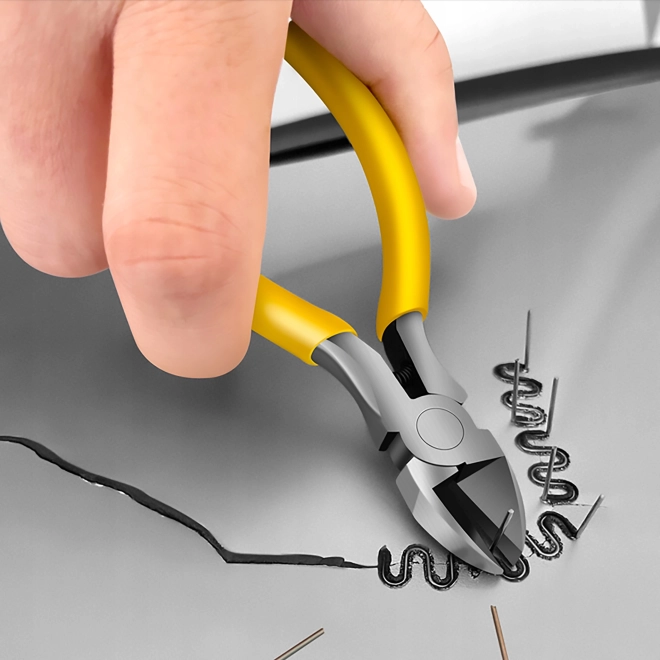 Set uključuje nožić i kliješta za oblikovanje plastike, što čini proces popravka učinkovitijim.