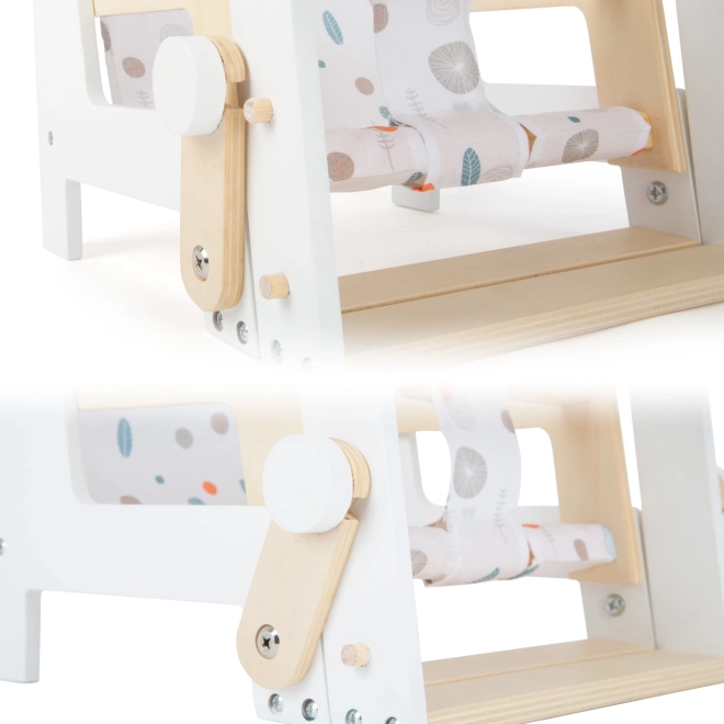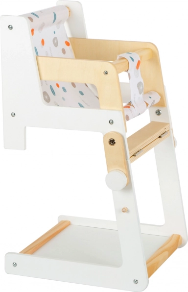 Multifunkcionalna stolica za lutke Little Button nudi izvrsnu mogućnost za igru roditelja zahvaljujući svom jednostavnom skandinavskom dizajnu i kvalitetnim materijalima. Ova se stolica može lako pretvoriti u mali stol sa stolicom i idealna je za lutke do veličine 46 cm.