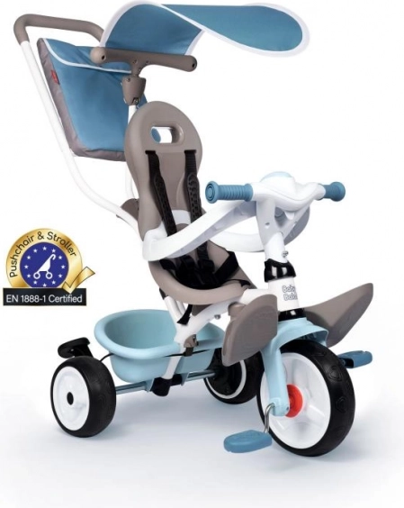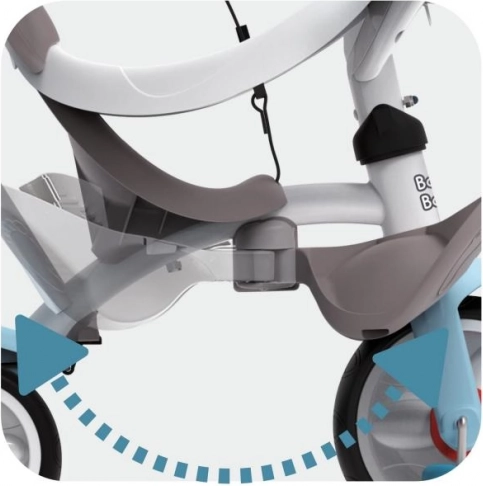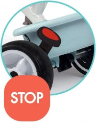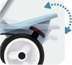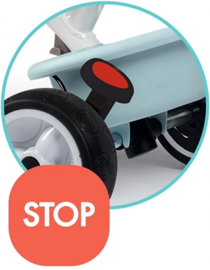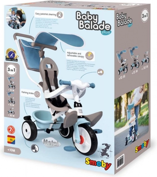 SMOBY Baby Balade Plus je pouzdan prvi tricikl koji će pratiti vaše dijete od prvih vožnji do samostalnog pedaliranja. Roditelji će cijeniti vodilicu s podesivom visinom i blokadu upravljanja za lako manevriranje, kao i parkirnu kočnicu za sigurno zaustavljanje. Zahvaljujući mehanizmu slobodnog hoda kotač se može okretati dok pedale miruju – idealno kada vodi odrasla osoba.