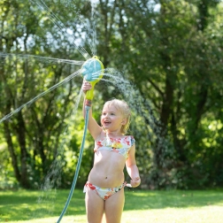 Djeca vole provoditi vrijeme na otvorenom, a ovaj vrtni vodeni raspršivač pružit će im sate zabave. Može se postaviti slobodno na tlo, držati u ruci ili pričvrstiti na vrtnu kućicu. Raspršivač nudi dva načina raspršivanja vode – stalni i rotirajući, koji se mogu mijenjati pomoću posebne tipke.