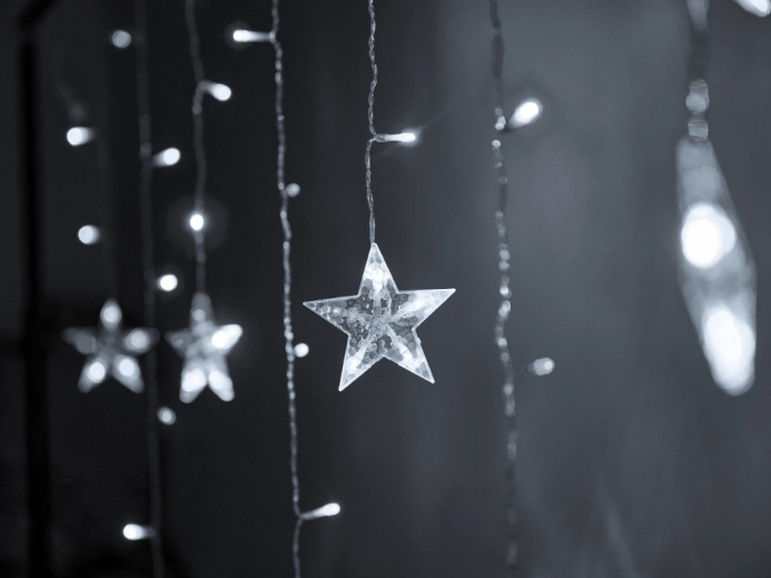 Ova božićna LED zavjesa pretvara prozore, zidove i niše u bajkovitu dekoraciju. Hladno bijela boja svjetla naglašava moderne interijere i daje im elegantan zimski štih – idealno za blagdanske trenutke, fotografiranje i večernji odmor.