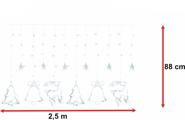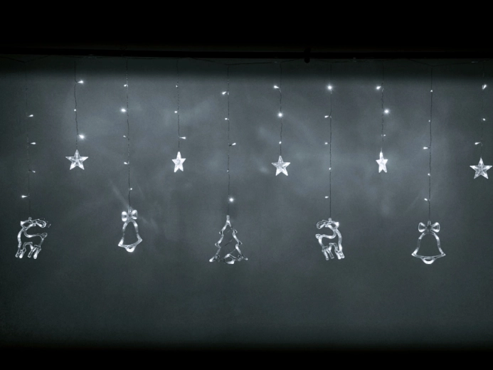 Svjetlosna LED viseća zavjesa s motivom sobova i božićnih simbola 2,5 m – Bijela