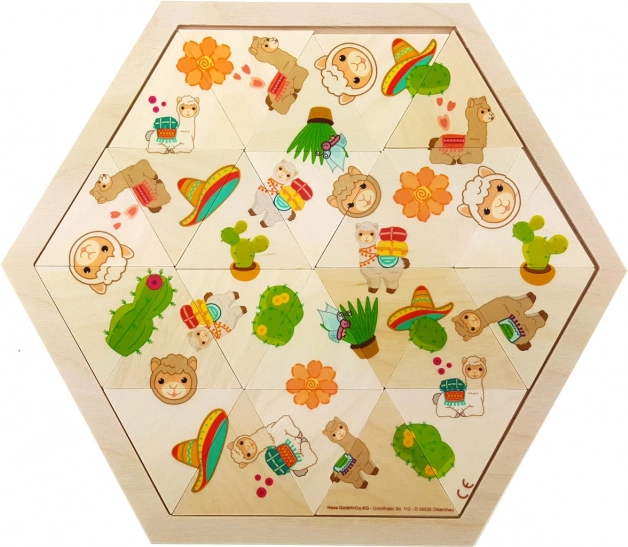 Ova kvalitetna drvena mozaika HESS s preslatkim motivom lame idealna je igračka za prve logičke složanke. Djeca na zabavan način uče prepoznavati oblike i boje, razvijaju strpljenje i prostornu percepciju. Zahvaljujući čvrstom drvenom okviru dijelovi se lako slažu i ostaju na mjestu.