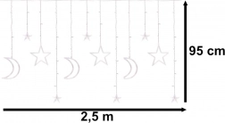 Velikodušna širina od 2,5 m i motivi mjeseca i zvijezda pretvorit će svaki prozor ili zid u ugodnu svjetlosnu scenu. Hladno bijela boja naglašava zimsku atmosferu i unosi u interijer čist, moderan izgled.