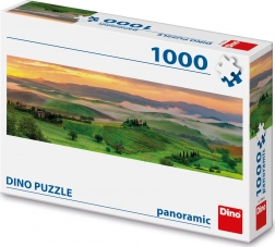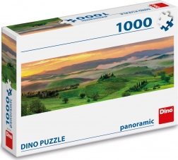 Panoramske puzzle DINO s motivom čarobnog zalaska sunca nad zelenim krajolikom nude mirnu atmosferu i fokusirano stvaranje. Zahvaljujući preciznom izrezu i čvrstom kartonu, dijelovi savršeno pristaju, a gotova slika dimenzija 96 × 32 cm doslovno poziva na podljepljivanje i uokvirivanje.