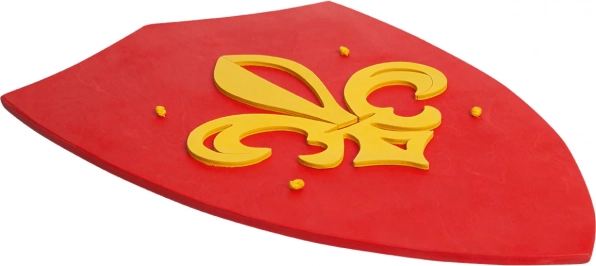 Izrazita crvena boja i žuta ljiljanica daju štitu srednjovjekovni šarm. Odlično pristaje uz kostime i kao dekoracija dječje sobe.