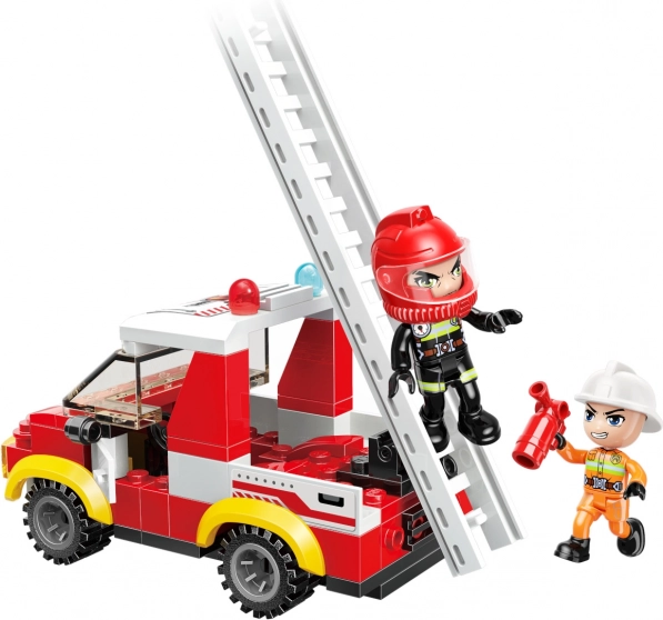 Ovaj kreativni komplet donosi djeci autentično vatrogasno vozilo s ljestvama s funkcionalnim elementima, zahvaljujući kojima se svaka igra pretvara u napetu spasilačku misiju. Dva hrabra vatrogasca, podesive ljestve i detaljna izvedba vozila pozivaju na beskrajne priče.
