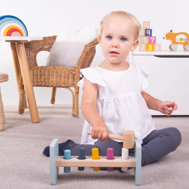 Zabijanje potiče koordinaciju ruka–oko, koncentraciju i strpljenje – idealna prva drvena igračka za djecu od 12 mjeseci.