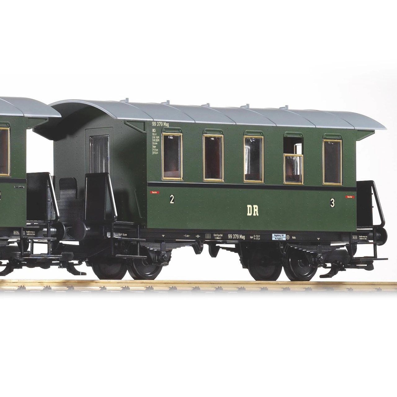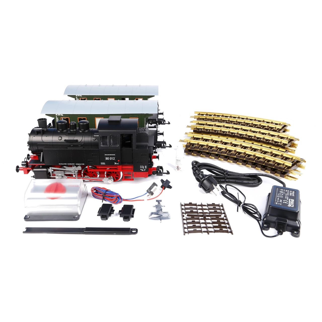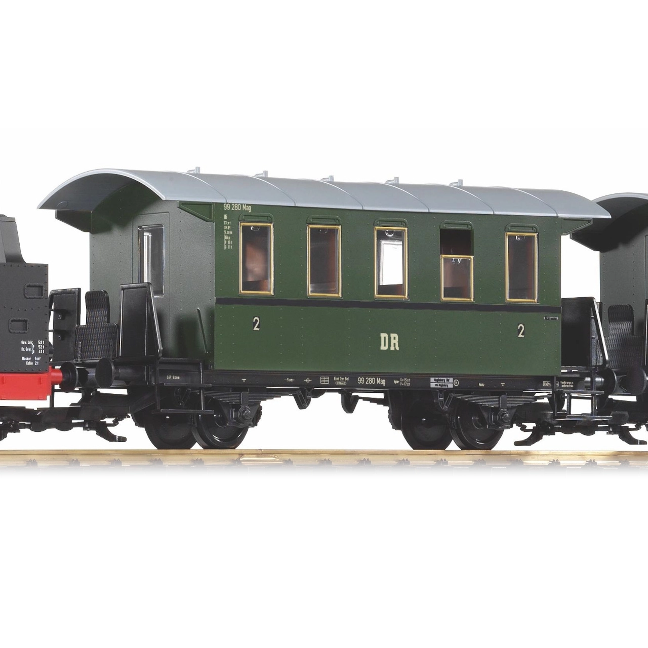 Ovaj PIKO početni set u izvedbi DR ere III donosi veliko iskustvo u mjerilu G. Parna lokomotiva BR 80 s kromiranim osovinskim parovima i kugličnim ležajevima osigurava gladak hod, svjetla se automatski mijenjaju prema smjeru vožnje, a ugrađeni zvuk kojim upravljaju magneti na pruzi daje vožnji autentičnost. Generator dima s priloženim punjenjem dodatno pojačava atmosferu parnog pogona.