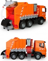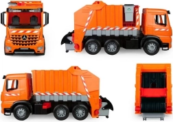 Ovaj detaljno izrađen kamion za smeće MERCEDES AROCS potiče dječju maštu i igru uloga. Zahvaljujući čvrstoj izradi i realističnim elementima, poput stražnjeg mehanizma za utovar i mobilnih spremnika, djeca lako shvaćaju princip razdvajanja i odvoza otpada.