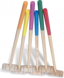 Set je izrađen od kvalitetnog bukovog drva s glatkom površinom za ugodan hvat, metalni obruči osiguravaju stabilnost na terenu, a tekstilna torba s patentnim zatvaračem omogućuje lako prenošenje i pohranu. Kvalitetna izrada u Francuskoj jamstvo je precizne obrade i dugog vijeka trajanja.