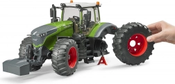 Zahvaljujući upravljanju prednjom osi pomoću produženog volana u krovu, upravljanje traktorom je jednostavno i zabavno. Vučna naprava s visinski podesivim podiznim mehanizmom omogućuje priključivanje raznih prikolica i alata Bruder (prednji utovarivači nisu kompatibilni s ovim modelom).