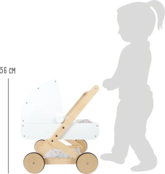Stilna drvena kolica za lutke iz kolekcije Little Button brenda small foot ističu se skandinavskim dizajnom, tihim gumiranim kotačima i praktičnim prostorom za odlaganje ispod ležaja. Zahvaljujući preklopnoj 2-u-1 sjenici lutke i plišanci do 46 cm mogu gledati naprijed i unatrag, a obostrana, rodno neutralna posteljina osigurava maksimalnu udobnost.
